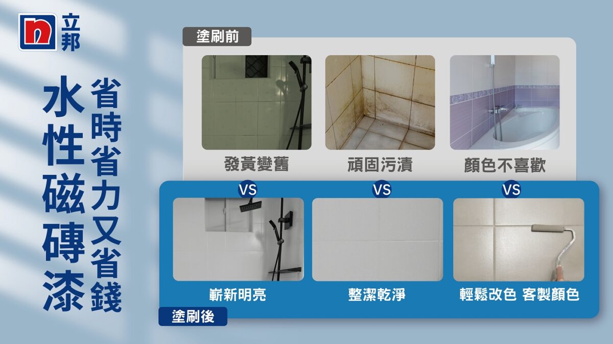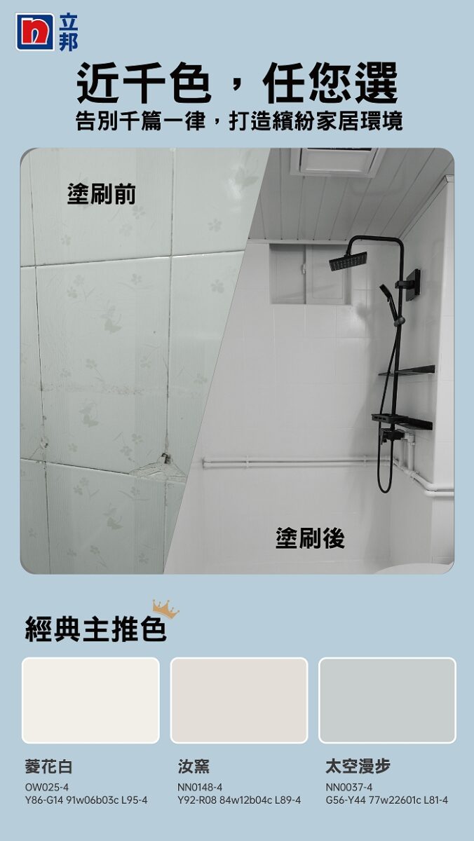 立邦水性磁磚漆,對老舊發(fā)黃、發(fā)霉變黑的衛(wèi)浴空間具有超強翻新改色效能