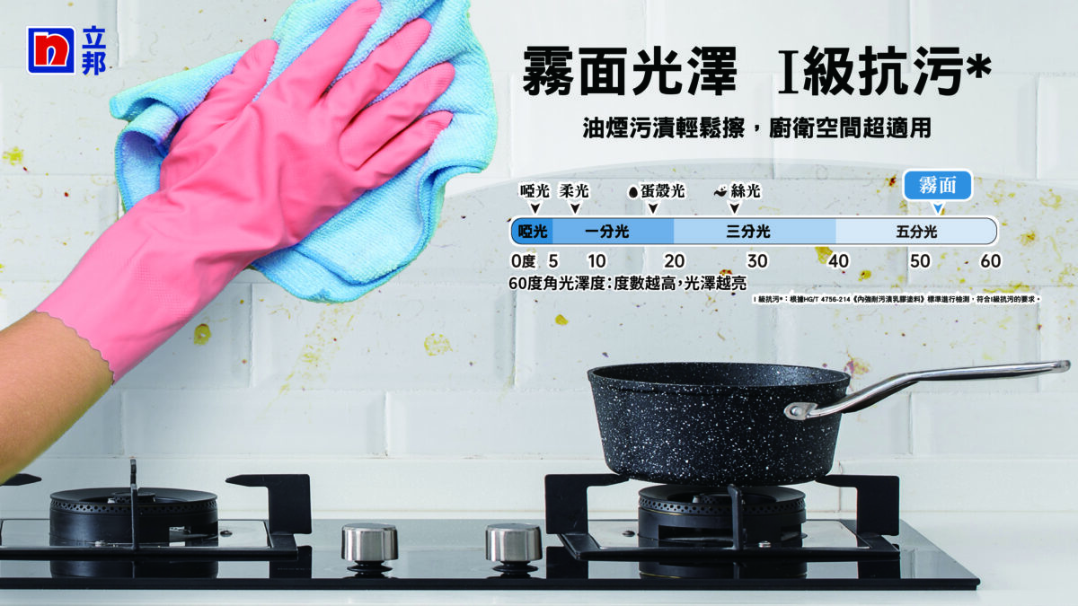 立邦水性磁磚,I級抗汙,油煙汙漬都能輕鬆擦,廚衛(wèi)空間超適用。