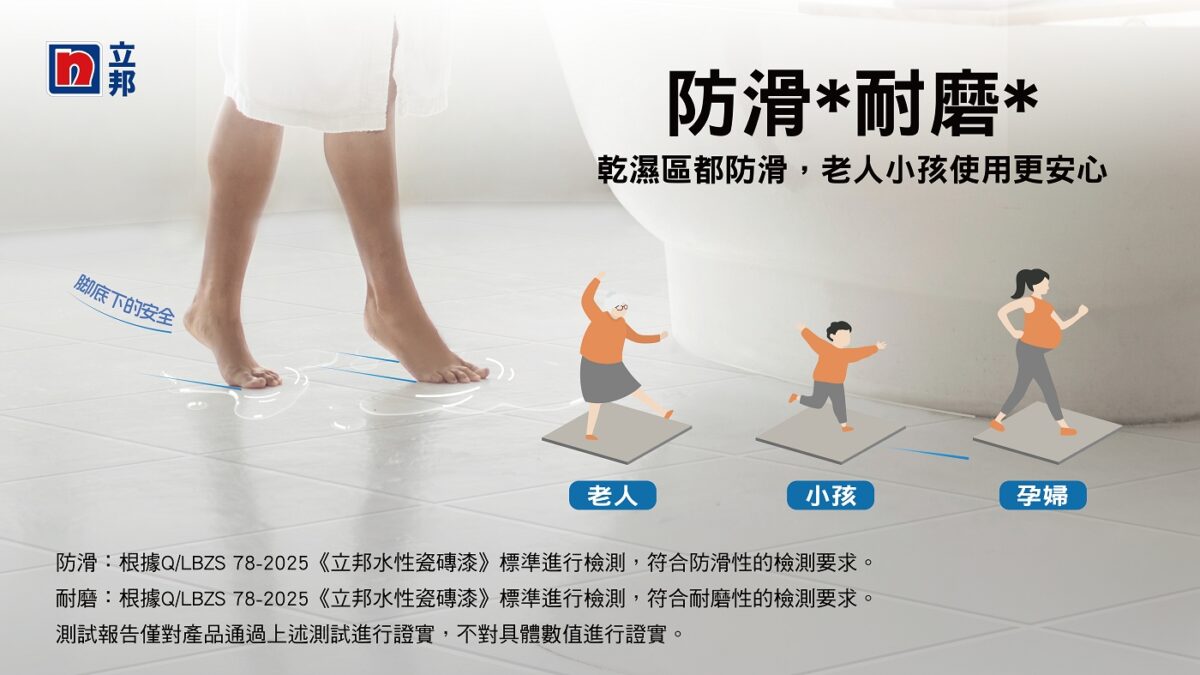 家人的安全是最重要的事情!立邦水性磁磚漆可以施作於地板磁磚,乾區(qū)與溼區(qū)都防滑,刷新改色同時兼顧安全效能,家中有長輩、小孩、孕婦更是安全加分。